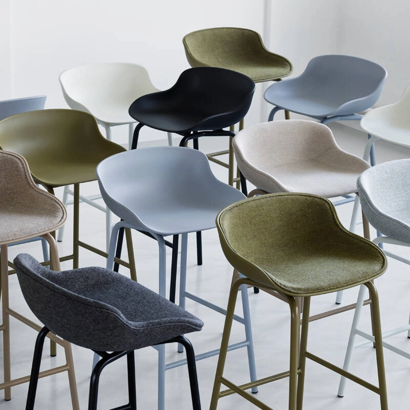 With Hyg, Normann Copenhagen presents a range of modern, multifunctional seating, distinguished by its comfort and resistance to wear and tear, as well as its ability to bring warmth and atmosphere to an interior. Designer Simon Legald drew inspiration from Danish hygge to create the Hyg furniture range, whose soft lines and enveloping silhouette create an intimate, cosy space. Beyond the armchairs and sofas, the range extends into a chair and a bar stool with the same organic and welcoming curves and offering the same level of comfort as the lounge furniture. Designed to offer support by hugging the shape of the body, the Hyg high stool is as comfortable as it is aesthetically pleasing. With its sober lines and range of available colours, this Normann Copenhagen tall stool will find its place in any interior.