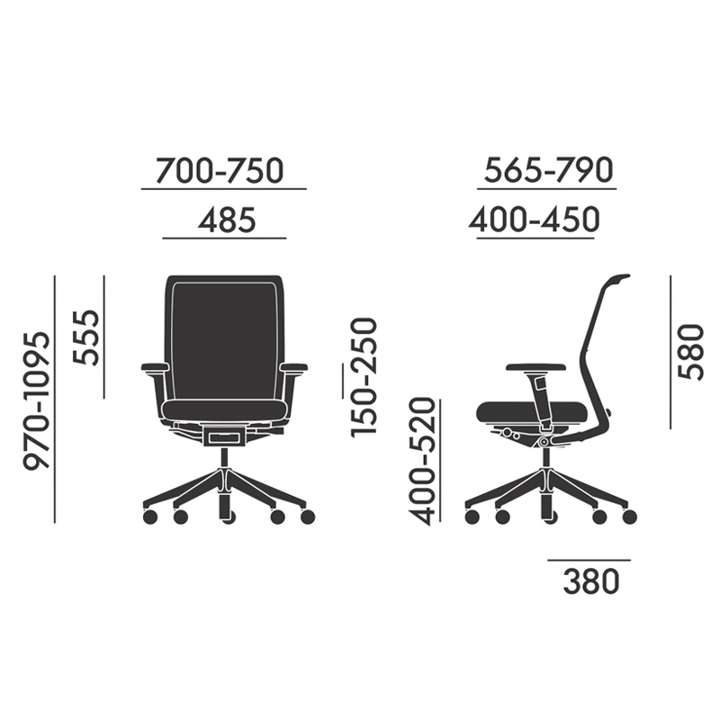 - EN 1335 ergonomic standard - Synchronous mechanism with forward tilt and seat-depth adjustment - Diamond-mesh backrest - 2D height- and width-adjustable armrests - Hard-floor castors