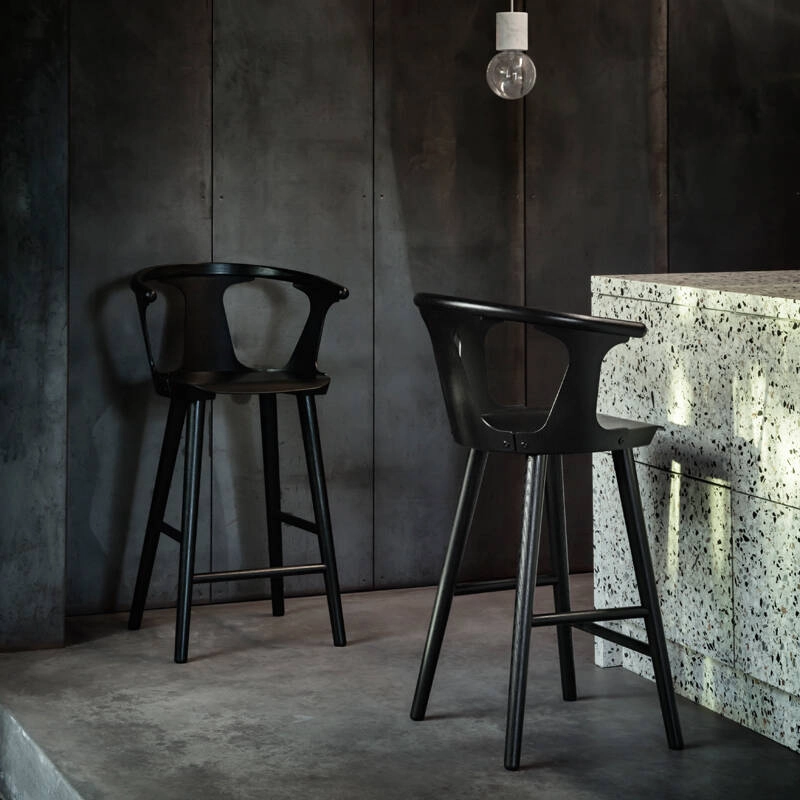 With In Between, designer Sami Kallio draws for And Tradition a chair whose central point is the interplay between positive and negative space. The backrest and sides provide a stable shape and good support, but shapes are also created by the empty spaces. The slightly sloping backrest and seat are balanced by the dynamically shaped legs, making In Between a designer seat that fits into any interior.The high stool, like the chair, is a manifesto of the designer's know-how and craftsmanship in woodworking. Producing the In Between stool requires modern industrial processes and manual intervention, creating a harmony between innovation and tradition. A beautiful product for design lovers.