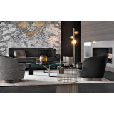 Jacques collection includes sofas, armchairs and footstools in various sizes, which are the fruit of a common creative root, translating a retro taste into a resolutely contemporary style. A sophisticated aesthetic language that is expressed in soft shapes, reduced proportions and visually striking details, such as the metal base in Light Bronze finish. Refined stitching highlights the curvilinear silhouette of the