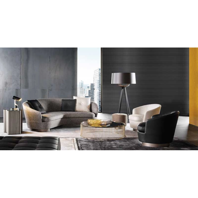 Designed by Rodolfo Dordoni for Minotti, the Jacques collection includes sofas, armchairs and footstools in various sizes, which are the fruit of a common creative root, translating a retro taste into a resolutely contemporary style. A sophisticated aesthetic language that is expressed in soft shapes, reduced proportions and visually striking details, such as the metal base in Light Bronze finish. Refined stitching highlights the curvilinear silhouette of the Jacques armchair for an elegant result. The sophisticated elegance and compact proportions that characterise all the seats in the Jacques collection allow these elements to blend gracefully into any context and coordinate easily with the new seating systems.