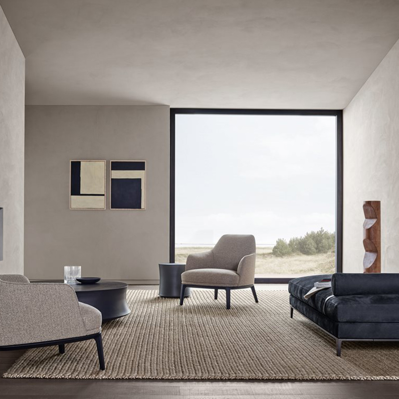 Jane Large model. An over-sized armchair with a distinguishing low back. Jane Large maximizes the softness of its volumes, creating an immediate feeling of comfort. Contact us for more information.
