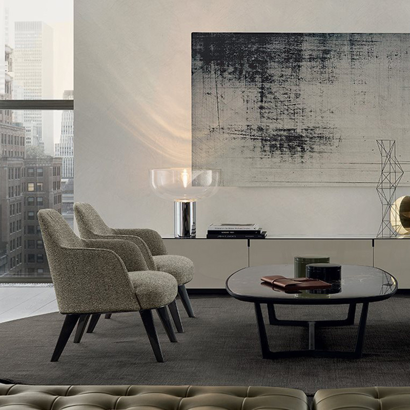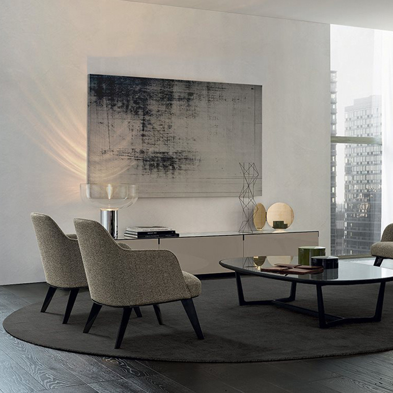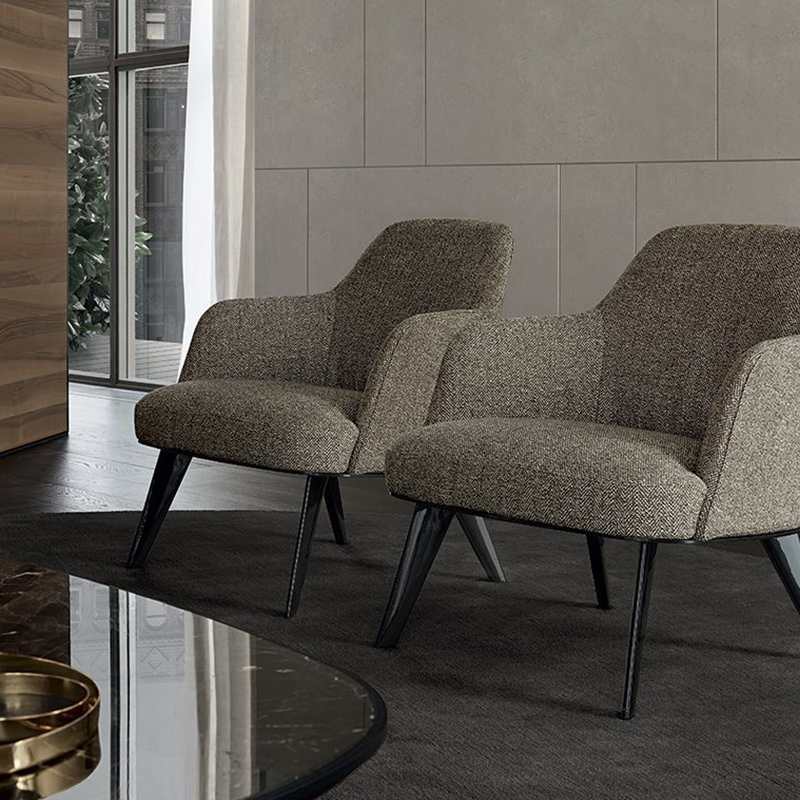 Jane collection, with its welcoming, enveloping lines, interprets spaces where elegance is at the service of leisure. The inspiration comes from the desire to create a collection with modest dimensions that prioritise the idea of comfort and intimacy. The design plays on slender lines, where the slopes and gentle curves give the object a dynamic character. The finishes, metal or wood for the structure of