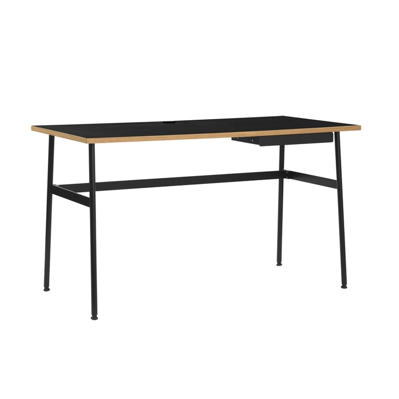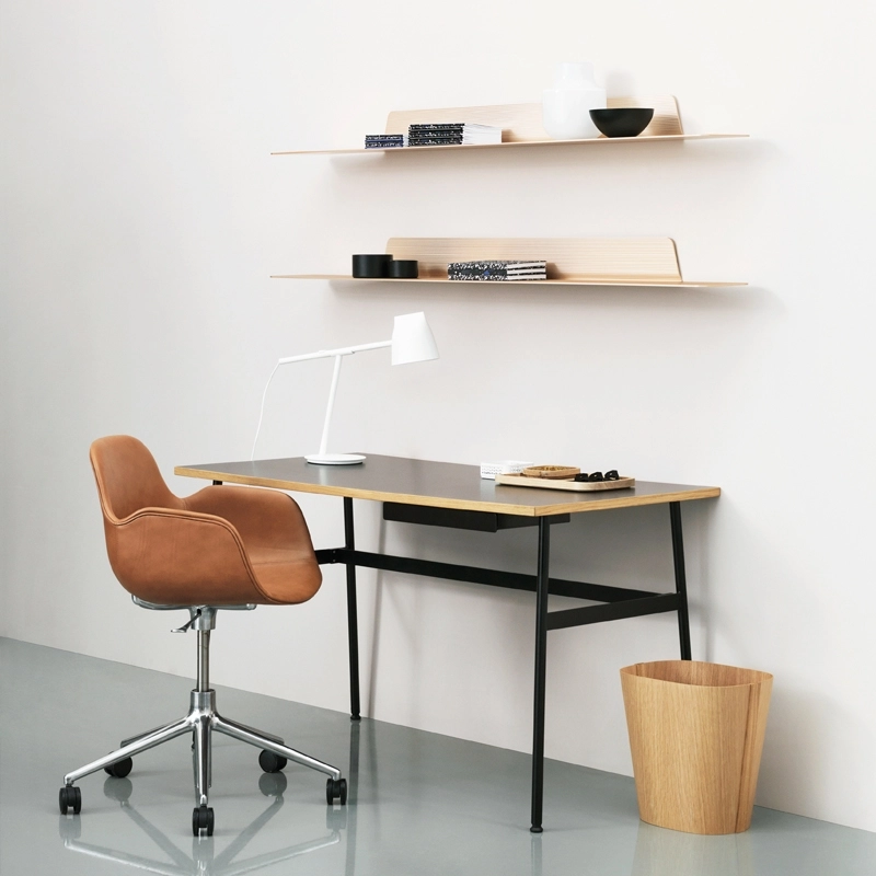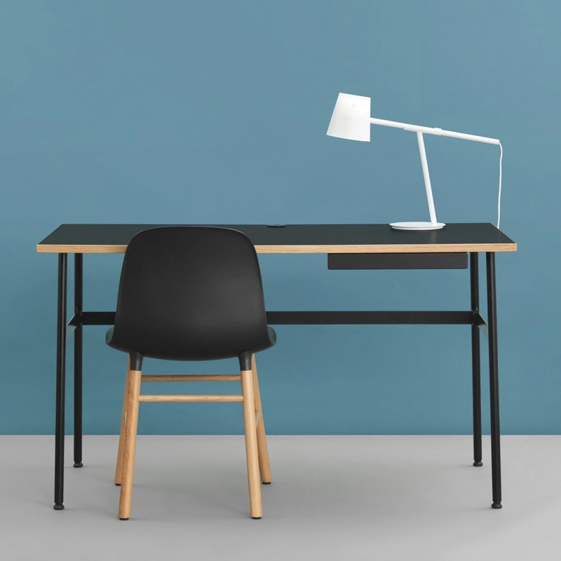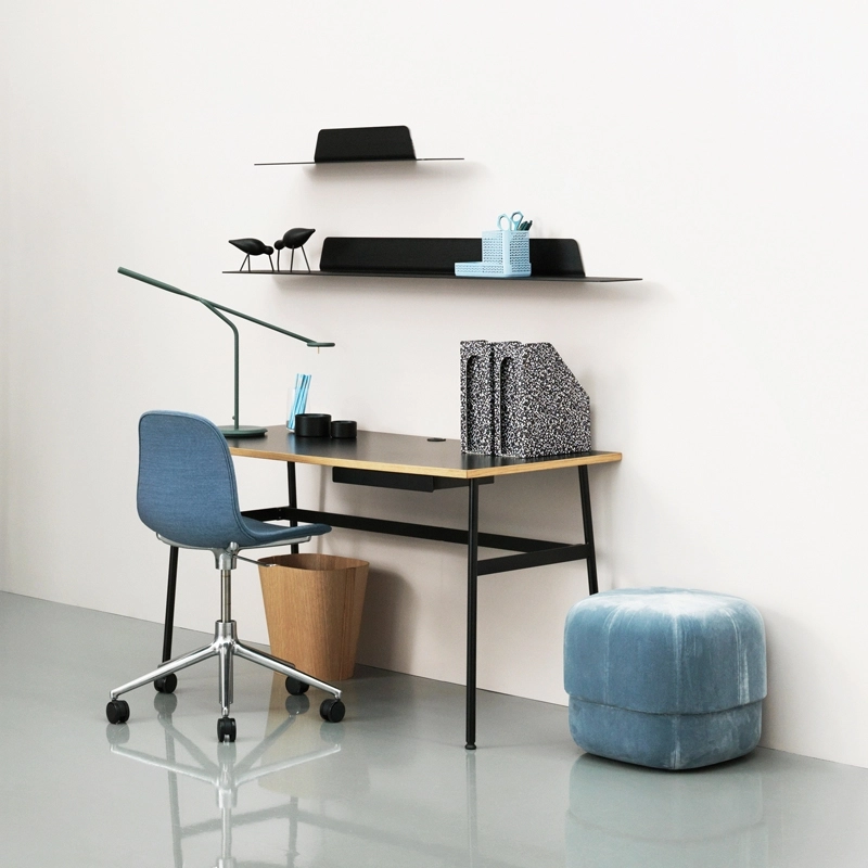 With Journal Desk, Simon Legald offers a desk that is functional down to the smallest detail and particularly aesthetically pleasing. Published by Normann Copenhagen, it features a coloured top and a lightweight steel frame. With Journal, the designer wanted to create a desk suited to the needs of our time.It blends easily with all interior styles. In addition, the relatively small size of this desk means that it does not take up too much space. Its monochrome appearance is interrupted by an oak edge that gives a warm tone to the whole. The desk top has cable outlets while a steel shelf under the table provides space for storing pens. The details of the Journal Desk contribute to a pleasant working environment and encourage the emergence of good ideas. The Normann Copenhagen desk comes flat-packed and is easy to assemble.