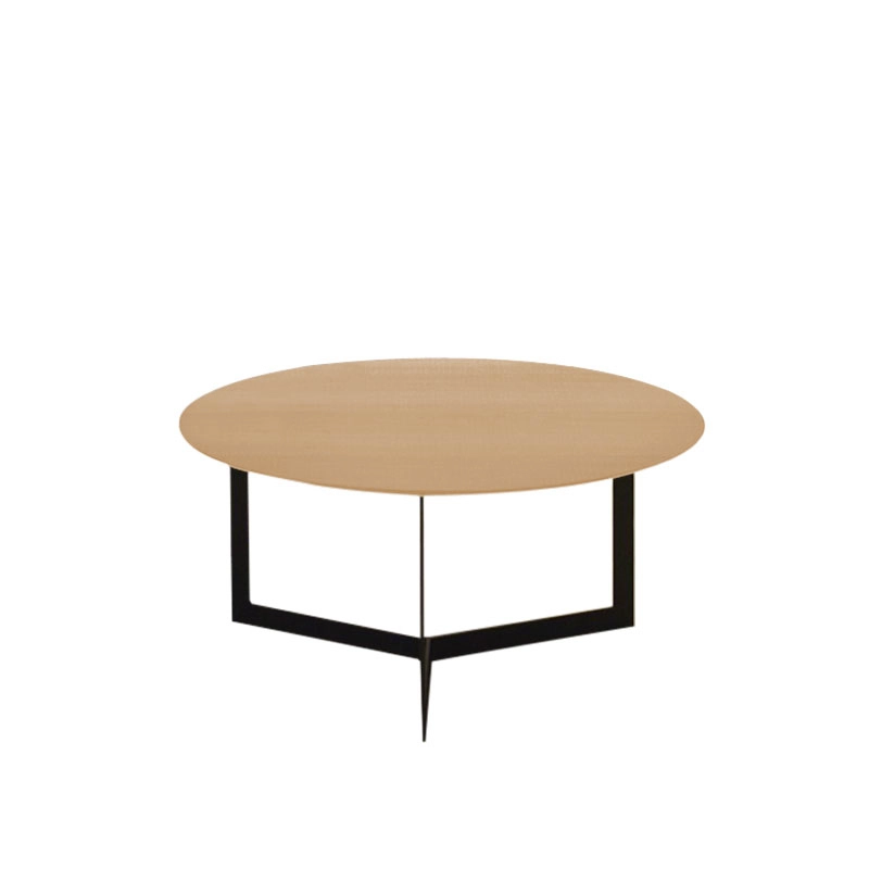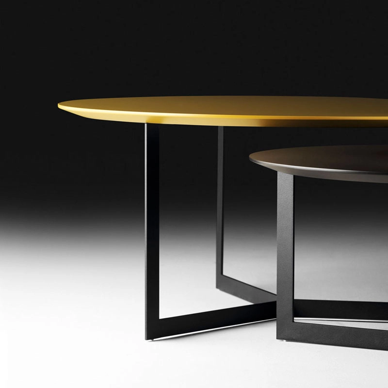 Kabi's metal feet is graphite. The tops have bevelled edges and are available in walnut, oak or lacquered finishes in a range of colours.