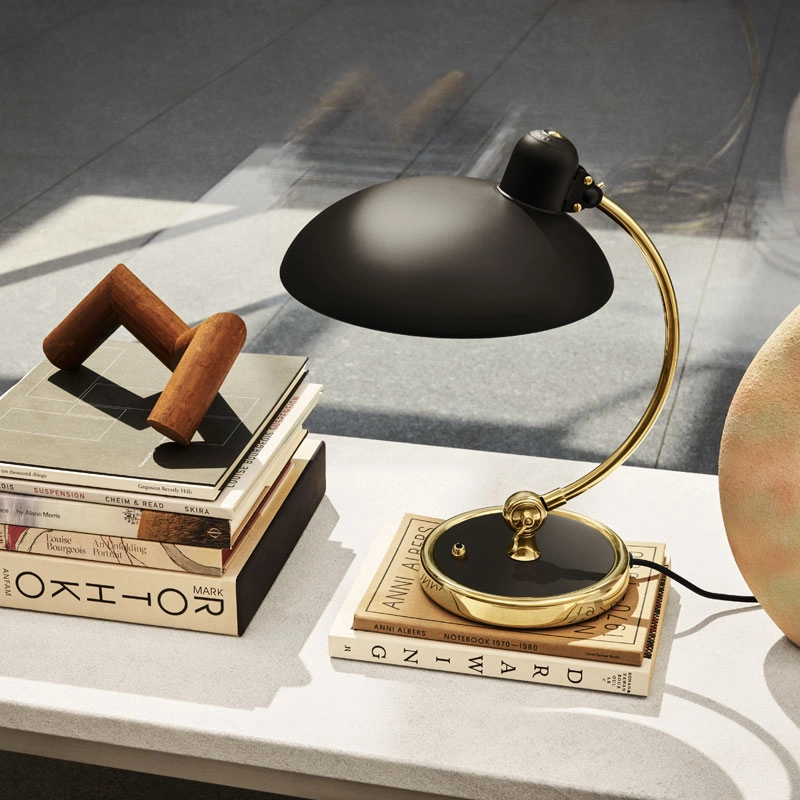 Designed in the 1930s by German goldsmith Christian Dell, the Kaiser Idell lamp is part of the Bauhaus artistic movement. Produced by Fritz Hansen, this lamp's special feature is its distinctive diffuser shape and its world-patented ball-and-socket joint. Kaiser Idell Luxus 6631-T features a bold combination of brass combined with matt black. The details of Kaiser Idell Luxus 6631-T are made of untreated raw brass that will take on a unique natural patina over time, giving it an elegant and sophisticated look. In this way, each piece will gradually change, reflecting its unique place in history. The design of Kaiser Idell is now recognised as a legendary classic. It was in 1936 that the 6631 lamp first appeared in a catalogue, quickly becoming the undisputed icon of the Kaiser Idell series. Thanks to an exquisite choice of materials and precision engineering, the Kaiser Idell Luxus 6631-T lamp is a symbol of German design that blends perfectly into private and professional spaces.