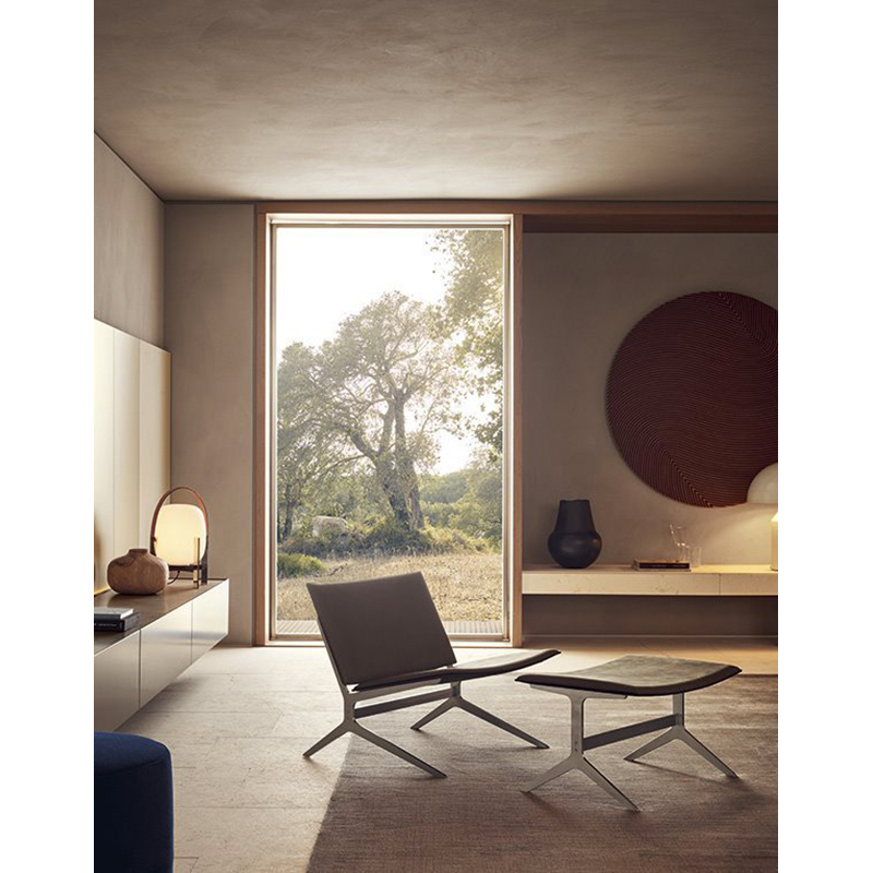 Kay Lounge is a designer armchair that can be accompanied by a footrest. Elegant, light, essential,