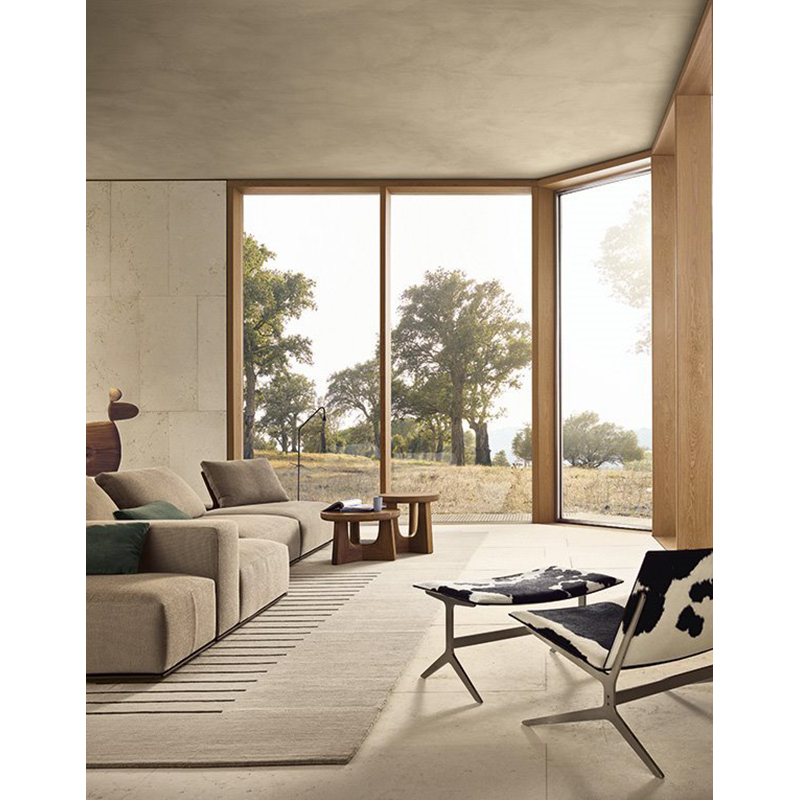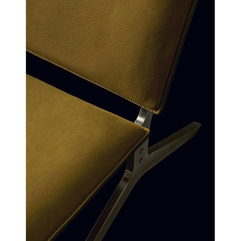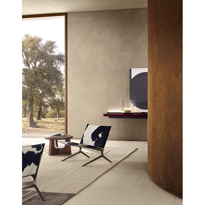 Kay Lounge benefits from an innate ease both on its own or in pairs, complementing large living areas or communal spaces. It has a simple architectural structure made of steel and offers three elegant finishes: leather with bright edges, leather or fabric.