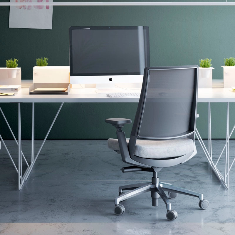 The Kineo office chair takes up the revolutionary concept of the 3.60 chair, with the option of the same ball-and-socket mechanism allowing the chair to oscillate 360º and therefore accompany the user's skeleton at all times, while increasing joint and muscle activity through its constant search for stability. The options on the Kineo task chair, such as the wide, comfortable NPR armrests and its seat depth adjustment mechanism, ensure that it can be adapted more effectively to a wide range of users.
