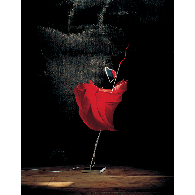 The MaMo Nouchies is a gentle and poetic collection featuring highly sophisticated technology. Created by Ingo Maurer in collaboration with Dagmar Mombach, the name of the collection refers to designer Isamu Noguchi and his paper lamps. Paper is crafted as if it were a textile, undergoing several steps, to create MaMo Nouchies lights. Each lamp is therefore unique. The Kokoro table lamp is a large, light-emitting sculpture that moves as if it were a dancer thanks to the almost magical shape of its diffuser. The light accentuates the folds and the subtle and harmonious forms. The heart-shaped mirror acts as a reflector. Poetic and sensual, the Kokoro lamp creates a soft and colourful atmosphere in your living room or bedroom.