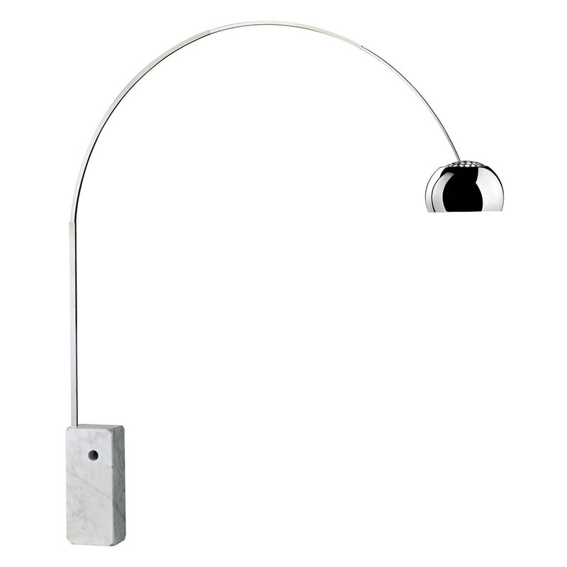 The Arco floor lamp has become a lighting classic, as well as a contemporary design staple. Created in 1962 by the Castiglioni brothers for publisher Flos. The Arco floor lamp has become a design classic. This floor lamp provides direct light and is fixed within a white Carrara marble base. The Arco floor lamp has a telescopic stem in satin-finish stainless steel. The height of the light can be adjusted from 137 to 171 cm from the floor. The diffuser is made of polished cast aluminium which is coated with a transparent protective lacquer. Perforated at the top, it scatters studs of light across the ceiling. Arco, still published today by Flos, is a must-have luminaire that attracts diffused soft light into your living room. Like a symbol, the Arco floor lamp also illuminates MoMA's permanent collection.