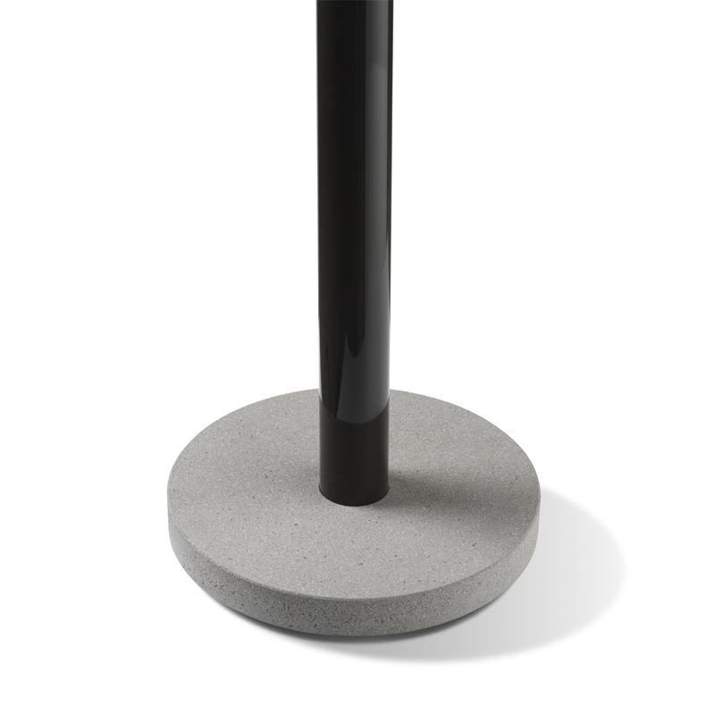 The Bellhop floor lamp designed by Edward Barber & Jay Osgerby for the Flos brand, features a tubular painted aluminium stem emerging from a concrete disc-shaped base. The diffuser at the top is made of opal blown glass. Its ceiling-directed light also provides glare-free side lighting, and the intensity of the light can be adjusted using a foot-operated dimmer on the cord. The simple, compact design of Bellhop makes it a discreet, elegant floor lamp. It will fit in perfectly in places like the living room or communal areas.