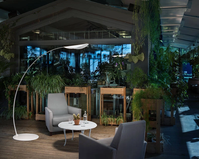 The Diphy is a pre-owned floor lamp is part of a collection of luminous, transparent petals created by Italian designer Mirco Crosatto for the Stilnovo house. The Diphy collection combines an organic aesthetic with a technological soul. The central source transmits light to the sinuous edges and micro-incisions of the surfaces, creating soft, even ambient lighting. OptiLight™ technology allows the Diphy floor lamp to disappear from view when switched off and magically reappear when switched on.