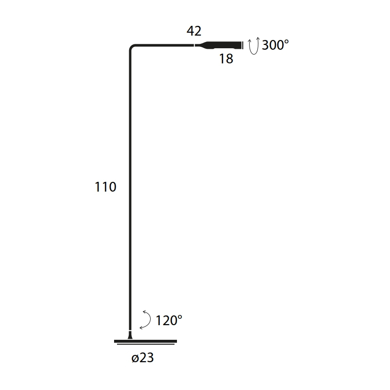 l 42 x h 110 cm, base : ø 23 cm, diffuseur : ø 2,6 x l 18 cm