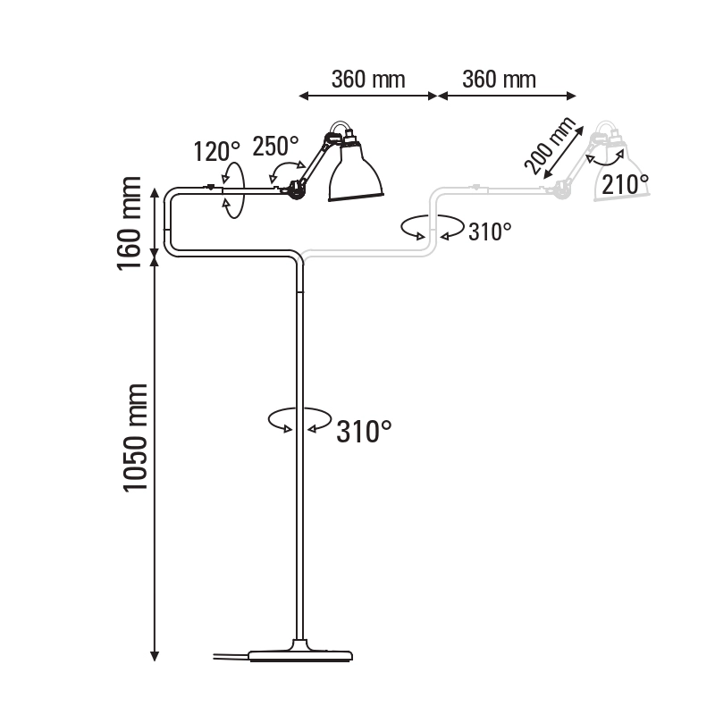 h 120 cm, bras horizontal 2 x 34 cm, bielle 20 cm