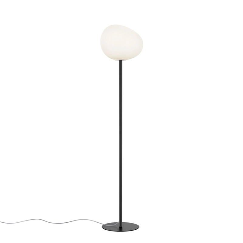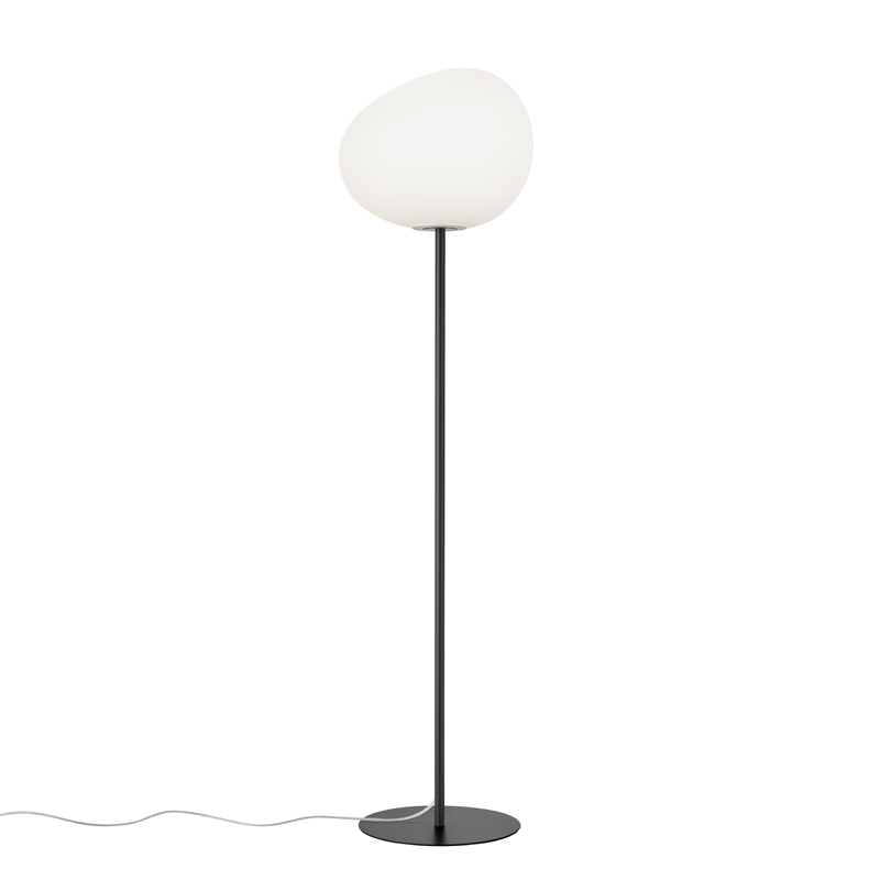Foscarini. Inspired by nature and the result of in-depth research, the shape of the shade is reminiscent of a large pebble polished by water, or the egg of a mythological animal, a symbol of creation and regeneration. It is a volume that is both familiar and surprising, as the asymmetrical shape of