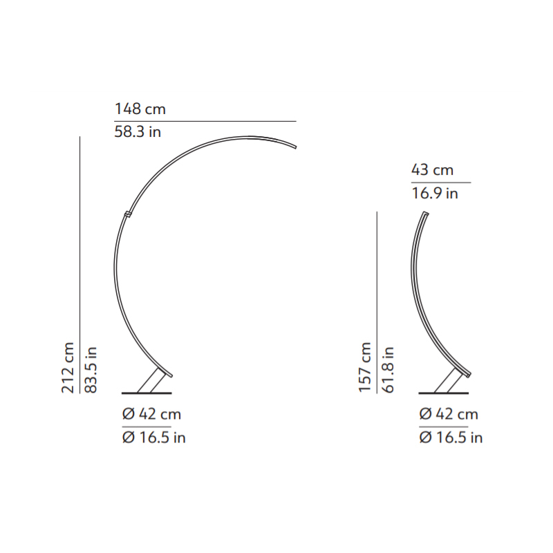 min l 43 x h 157 cm, max l 148 x h 212 cm, base ø 42 cm