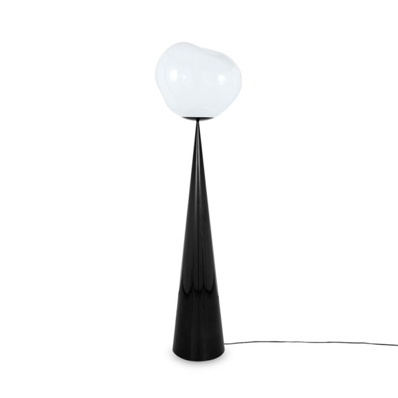 The Melt Cone Fat floor lamp, designed by Tom Dixon, evokes an artistic fusion of melting glass and galactic landscapes. Learn more