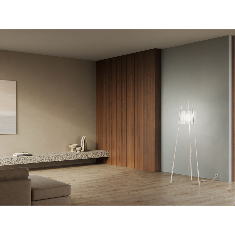 Designed by Marc Sadler for the Kundalini brand, Tyla is an original and elegant floor lamp. The long, wiry stems of Typha latifolia, an elegant aquatic plant, inspire the supports for this lamp, with its delicate, almost lyrical design. And the same movement of plants cradled by the wind is repeated in the original lampshade, whose delicate, slightly irregular shape, made of opaque glass on the inside and transparent on the outside, is enlivened by luminous serrations. Tyla has a dimmer switch and will fit perfectly into your home, giving you a cosy, warm atmosphere.