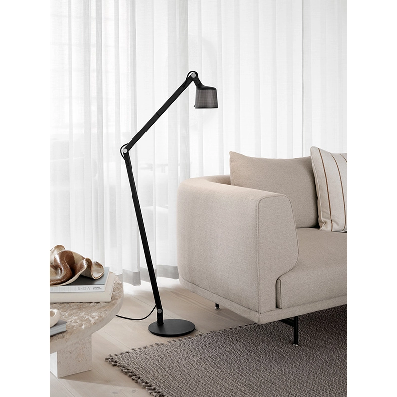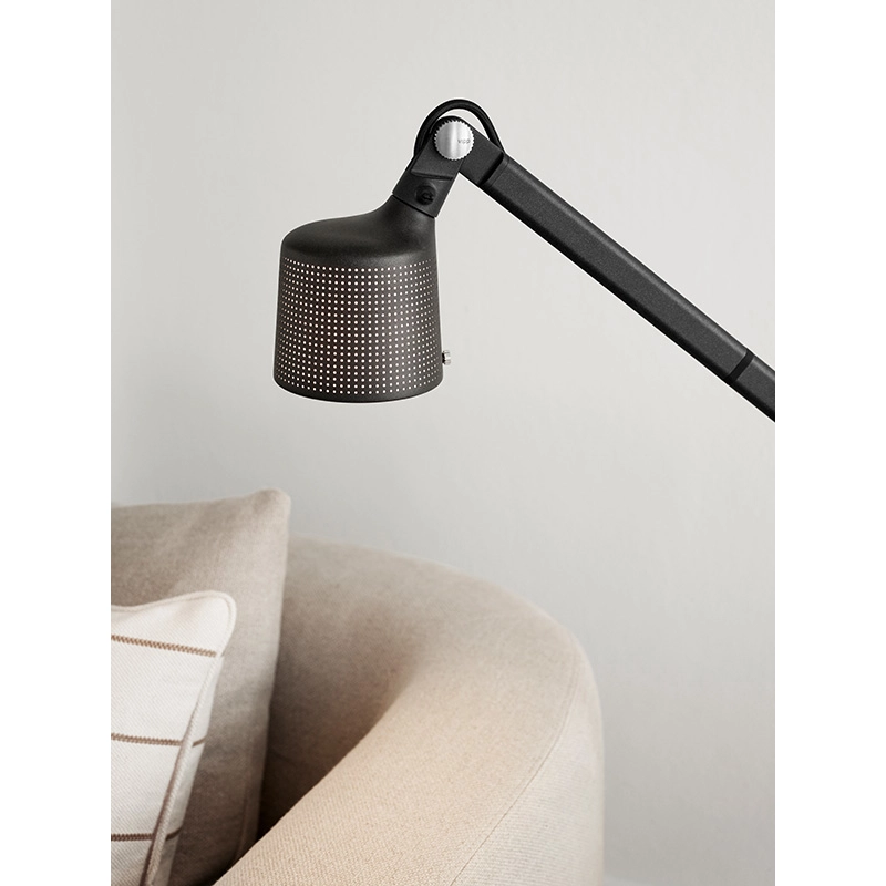 The Vipp525 floor lamp is an ideal reading light for the living room. Fitted with functional details such as an adjustable arm for targeted lighting, the Vipp525 floor lamp also has a perforated shade and a matt glass diffuser for a pleasant diffusion of light. With its slim, sleek silhouette, the Vipp floor lamp fits easily into any reading corner.