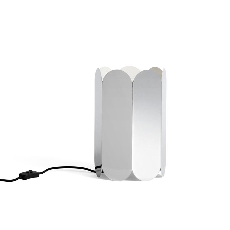 Arcs is a series of objects and lights created by the duo Muller Van Severen for the brand Hay. Composed of a repetition of vertical arches that form an elegant, multi-faceted silhouette, the Arcs lampshade creates a spatial volume that plays with light and form. This designer shade can be used as a table lamp or pendant. Made from steel, Arcs is available in several colours or with a mirror finish. Arcs is also available in a surface-mounted version. The Hay lampshade is supplied without an electrical system. System sold separately and available in two versions: table lamp with on/off switch or pendant.