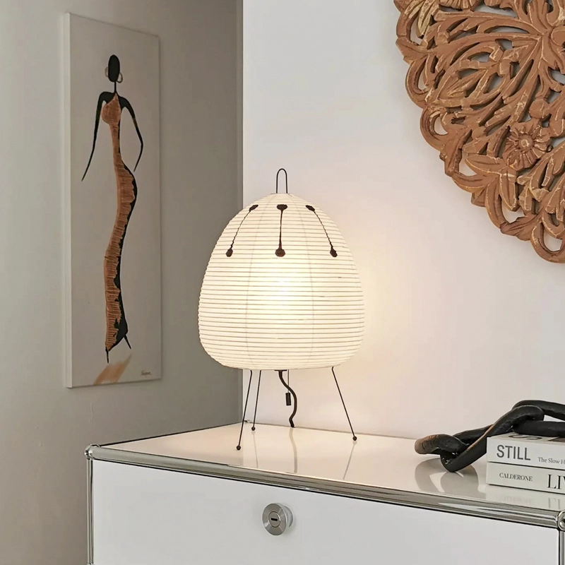 In 1951, the Japanese-American artist Isamu Noguchi created the Akari Light Sculptures, a collection of completely unique handcrafted lighting fixtures. Published by Vitra, these paper sculptures are part of the designer's already diverse oeuvre, which ranges from furniture to the design of spaces of all kinds. In addition to material and form, Noguchi's sculptural style takes into account the harmony produced by each piece and the space it occupies, and this has had a lasting influence on design since the 1950s. The Vitra Akari lamps - a Japanese term meaning clarity or light - evoke a certain feeling of lightness and delicacy, just like the handmade paper parasols or lanterns that inspired their design. Each of the lights including Akari 1AD is handmade: the lamp's framework is obtained by stretching bamboo rods, wrapped in thin strips of washi paper glued to the structure. The body of the floor lamps and table lamps rests on an elegant painted steel base.