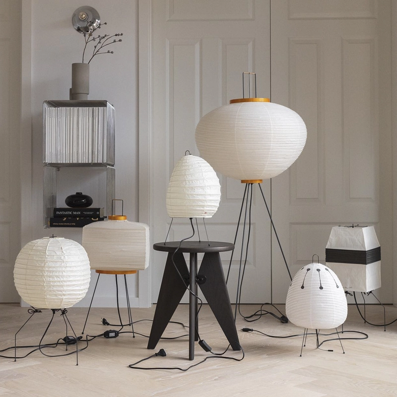 In 1951, the Japanese-American artist Isamu Noguchi created the Akari Light Sculptures, a collection of completely unique handcrafted lighting fixtures. Published by Vitra, these paper sculptures are part of the designer's already diverse oeuvre, which ranges from furniture to the design of spaces of all kinds. In addition to material and form, Noguchi's sculptural style takes into account the harmony produced by each piece and the space it occupies, and this has had a lasting influence on design since the 1950s. The Vitra Akari lamps - a Japanese term meaning clarity or light - evoke a certain feeling of lightness and delicacy, just like the handmade paper parasols or lanterns that inspired their design. Each of the lights including Akari 7A is handmade: the lamp's framework is obtained by stretching bamboo rods, wrapped in thin strips of washi paper glued to the structure. The body of the floor lamps and table lamps rests on an elegant painted steel base.