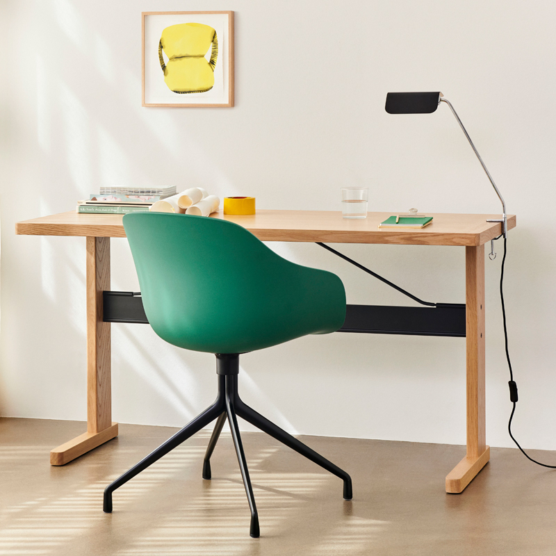Taking inspiration from the classic banker's lamp, designer John Tree fuses archetypal references with his contemporary sensibilities to create the Apex Lamp. The folded steel shade creates a pointed roof silhouette, providing a graphic contrast with the chrome base. The Apex Clip lamp features an adjustable clip, for securing the lamp to a horizontal surface. The shade can rotate 360°, allowing the user to direct the light as they wish. Edited by Hay, Apex Clip is a functional lamp, perfect for a multitude of spaces and uses.
