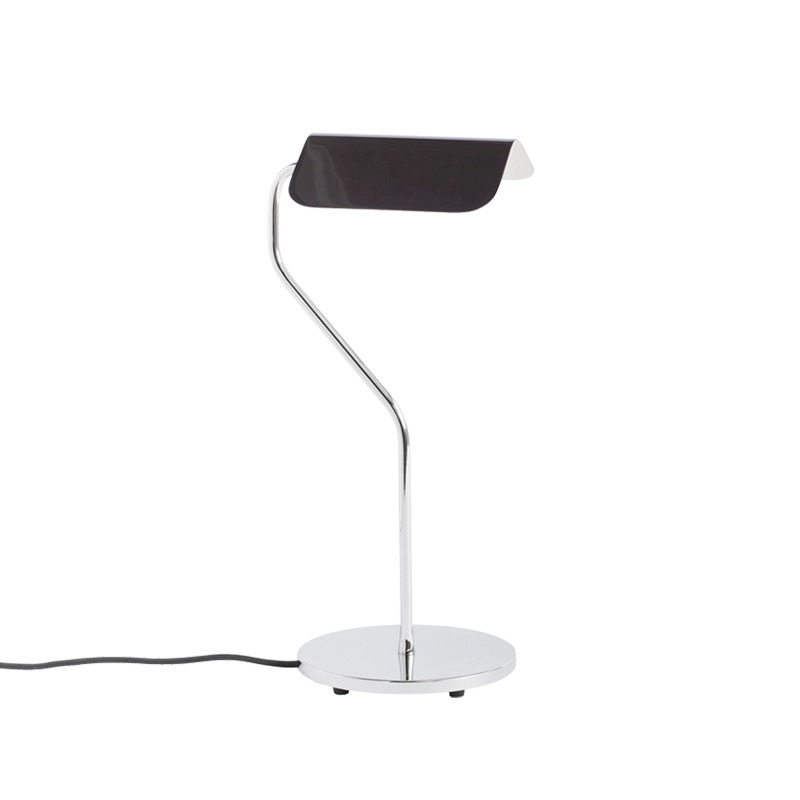 Taking inspiration from the classic banker's lamp, designer John Tree fuses archetypal references with his contemporary sensibilities to create the Apex Lamp. The folded steel shade creates a pointed roof silhouette, providing a graphic contrast with the chrome base. The shade can rotate 360°, allowing the user to direct the light as they wish. Edited by Hay, Apex is a functional lamp, perfect for a multitude of spaces and uses.