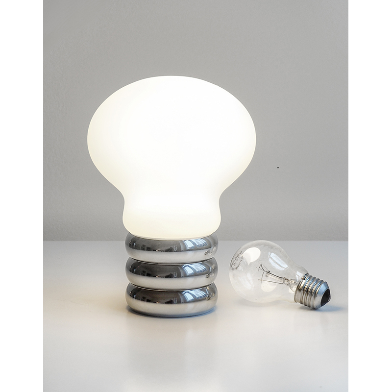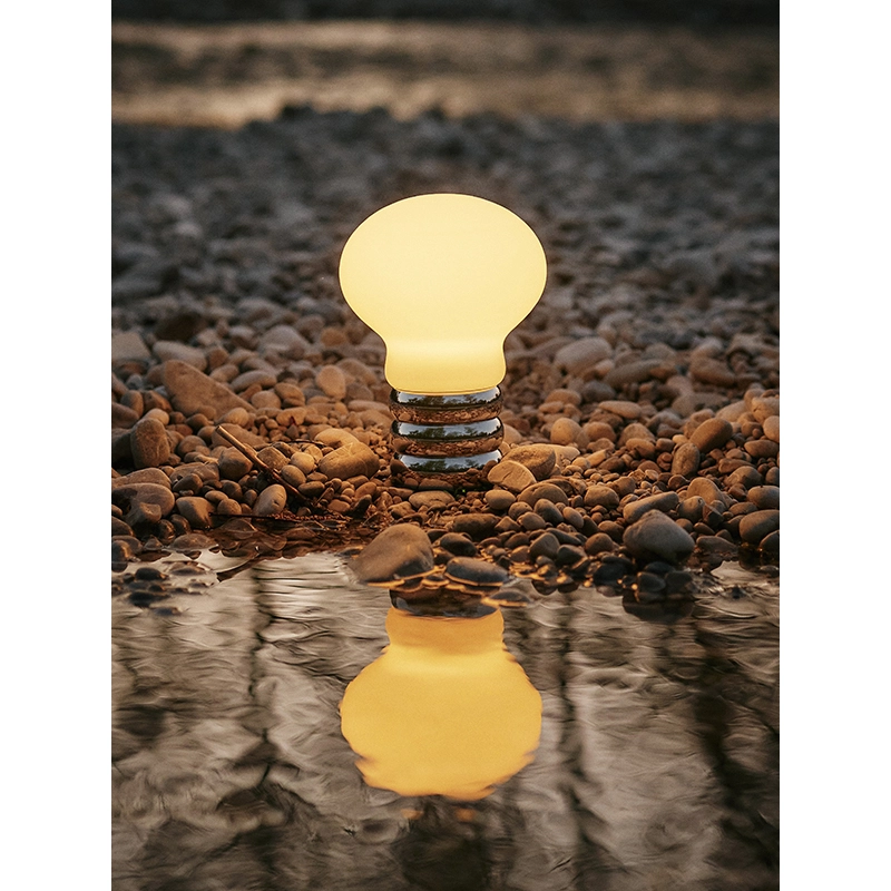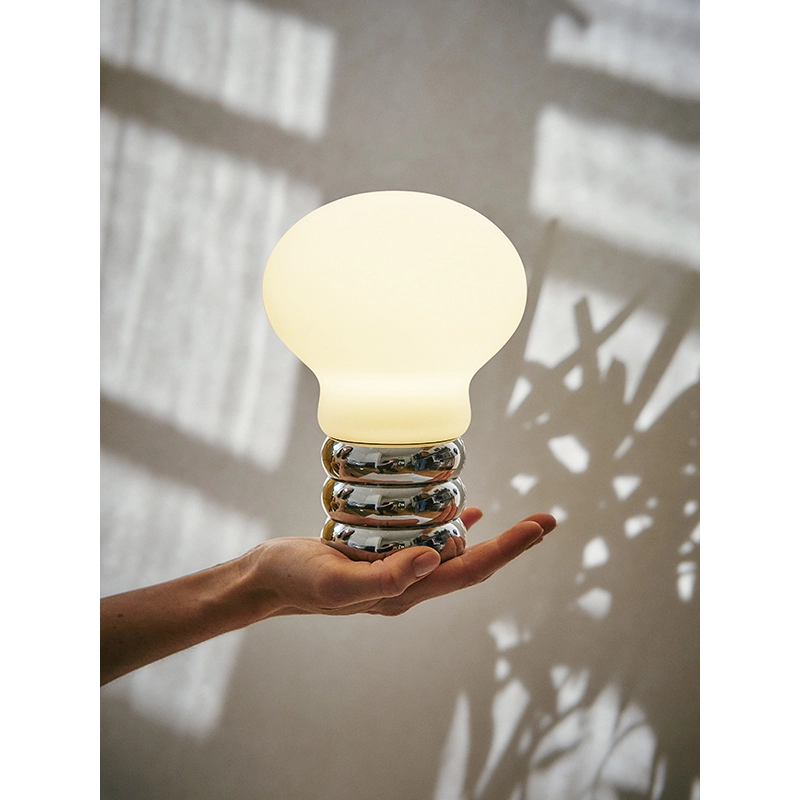 The B.Bulb lamp by Ingo Maurer is the portable version of the world-famous 1966 lamp. Made of metal and glass, this version is smaller and has a rechargeable battery. Versatile and cable-free, it can be moved from room to room. The lampB.Bulb is not, however, made for permanent outdoor use. A button on the underside of the base lets you dim the light for up to 10 hours. The B.Bulb battery lamp by Ingo Maurer is original, simple and perfect for lighting up your home.