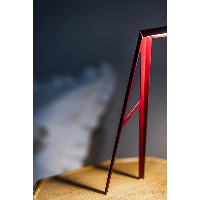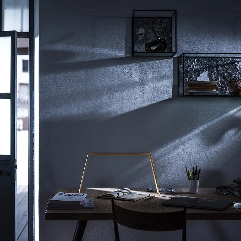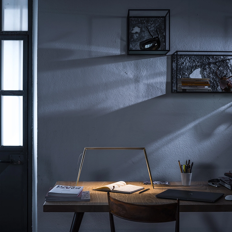 Designed by Francesco Meda for Foscarini, Bridge is a contemporary yet timeless design object, a luminous bridge with an essential and distinctive visual presence. Available in two sizes, this table lamp has a direct downward light emission. Each luminaire is created from a single sheet of metal, laser-cut and folded without welding. As attractive as it is functional, the Bridge lamp features an LED card with an infrared optical sensor that turns the lamp on or off with a wave of the hand. Published by Foscarini, Bridge is part of the permanent collection of the Milan Triennale design museum.
