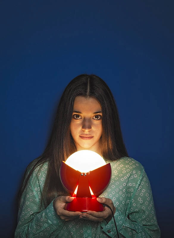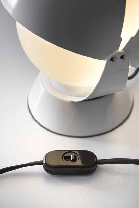 First publishedby Stilnovo in 1965, Buonanotte is one of the Milanese house's icons of the past reissued to illuminate today's interiors. Buonanotte is a fun stand lamp whose light can be adjusted by rotating two metal quarters which, moved freely on the spherical diffuser, control the light beam. With a simple gesture, it changes the atmosphere: open for a good read or closed and diffuse, an accomplice to dreams. The Buonanotte lamp consists of a metal body and a triplex blown glass diffuser. This lamp by the Italian house Stilnovo is available in white, blue, yellow and red.