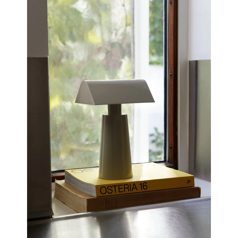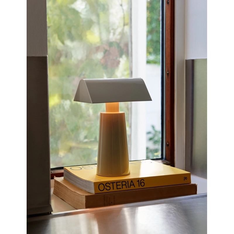 And Tradition presents Caret, a lamp offering a practical solution to the increasingly blurred boundaries between work and home. The Caret portable lamp is inspired by "banker's lamps", the iconic lights with a diffuser found in historic libraries. Made entirely from lacquered steel by Matteo Fogale, lamp Caret features a rounded base and a pyramid-shaped diffuser that emits a soft, diffused light. Equipped with a battery that can be recharged via a magnetic micro USB cable and an LED source, Caret is a small lamp that's as elegant as it is functional, accompanying you around the house and all the way to the terrace.