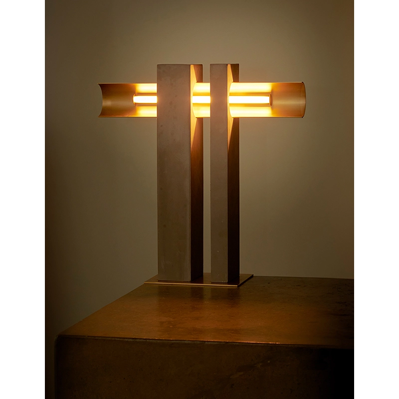 The Cauvet Pi table lamp is an exceptional luminaire, combining brass-plated steel with the elegance of clear concrete. Largely inspired by the Greek alphabet, its design creates a timeless dialogue between simplicity and luminous functionality. Cauvet Pi from DCW Editions is a true work of art. This table lamp features a reflector, diffusing a soft, bewitching light. The Cauvet Pi table lamp transcends its role as a luminaire to become an architectural sculpture offering a unique visual experience. The Pi table lampis part of the Cauvet lighting collection, which includes the Iota and Tau lamps. This table lamp by DCW Editions is a piece that embodies timeless elegance and brings a special atmosphere to any interior.
