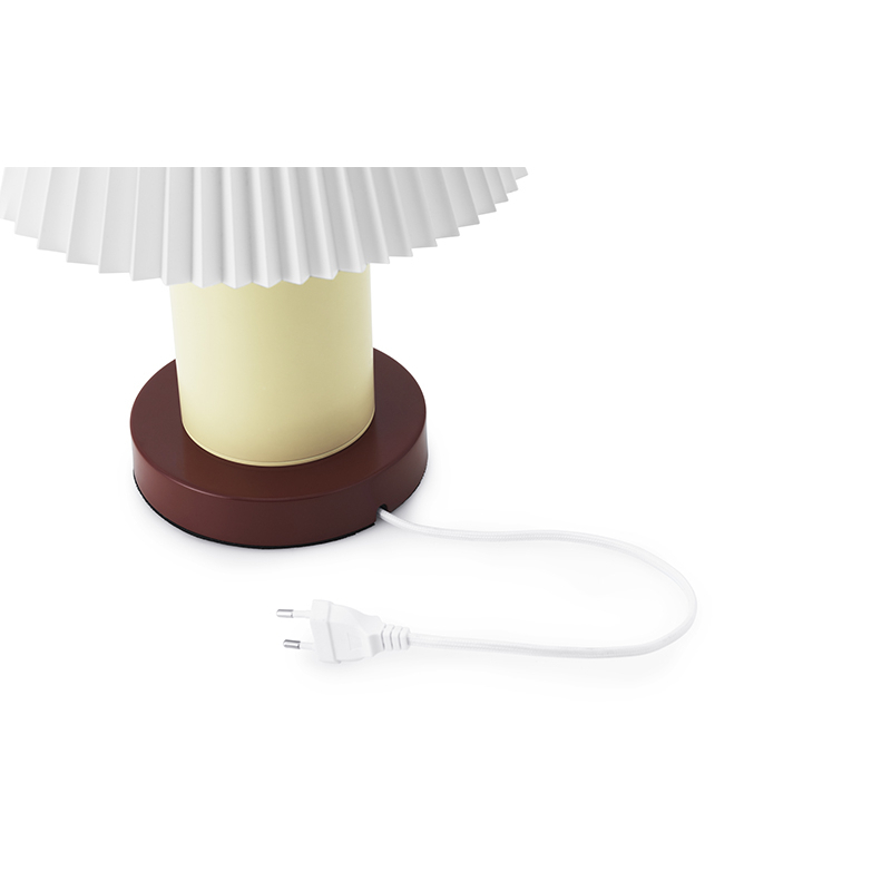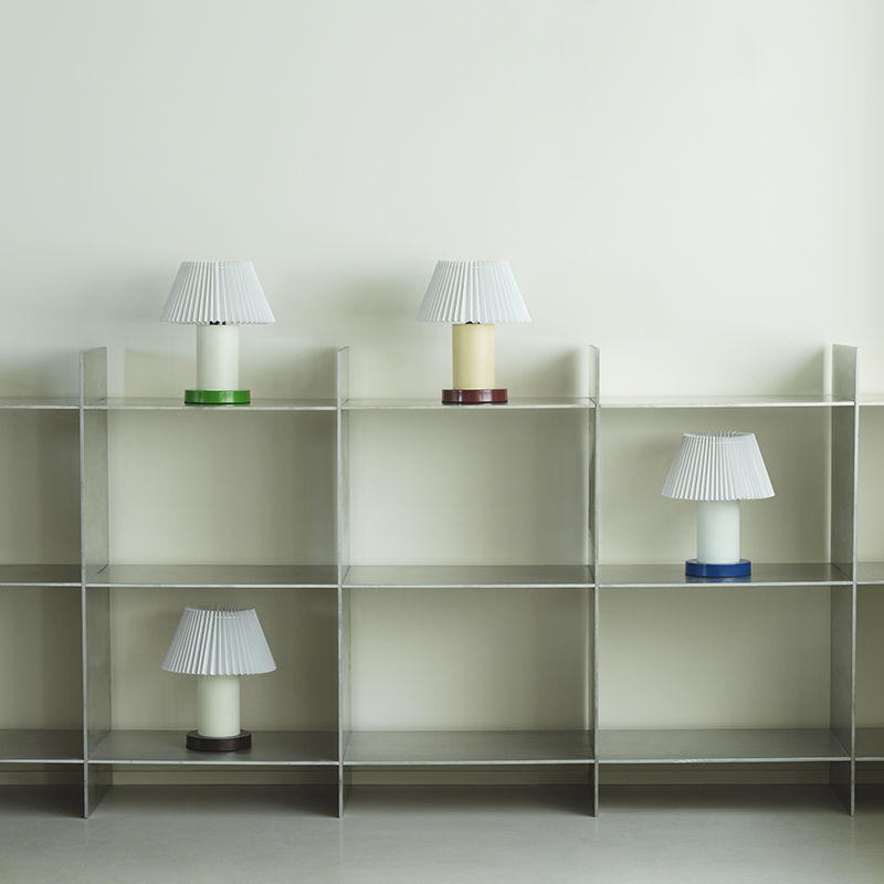 Published by Normann Copenhagen, Cellu is a collection of lighting fixtures elegantly combining the ancient and the modern. Cellu consists of a table lamp and an oversized floor lamp. Their design stands out for its striking proportions, combined with classic references. The Cellu lighting collection is a modern reinterpretation of the classic folded paper lampshade. Made from durable PVC, the lampshade rests on a powder-coated aluminium column and a powder-coated steel base, giving it a distinctive, robust look that's right up to date with the times. The base has a very distinctive look, whose XXL dimensions are further accentuated by the original, playful colour combination of the lacquered cladding. In the bedroom or living room, the Cellu table lamp adds a cheerful, warm touch.