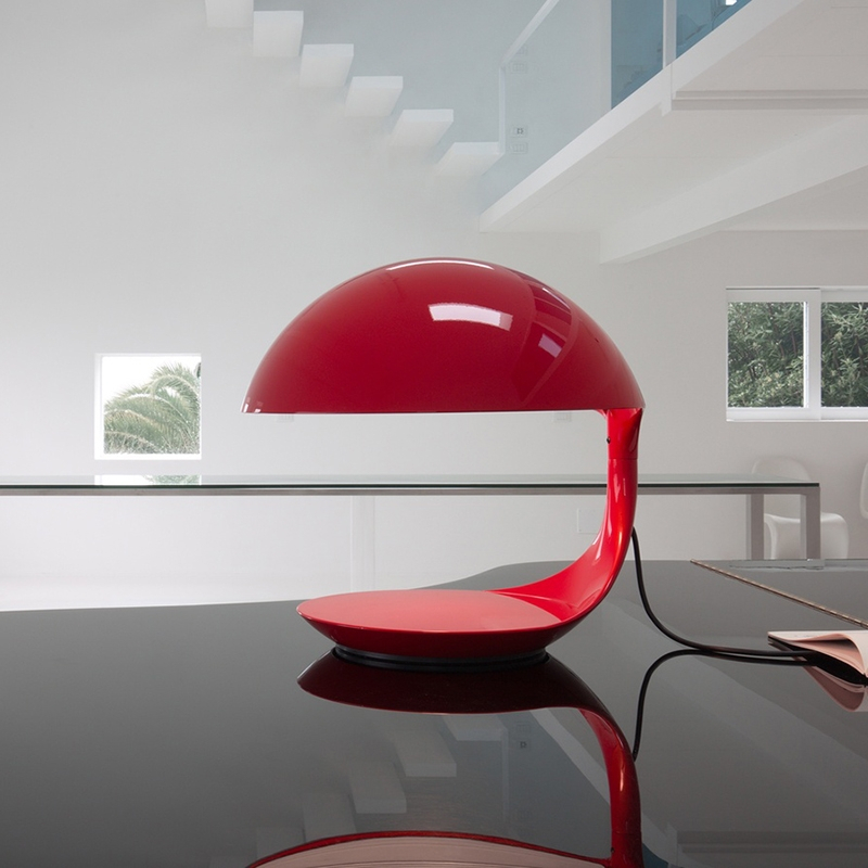 In 1968, Elio Martinelli created the Cobra table lamp, published by Martinelli Luce. The design of this lamp is based on a completely innovative moulding technique, which the Italian designer has used on several occasions to create numerous other lights.