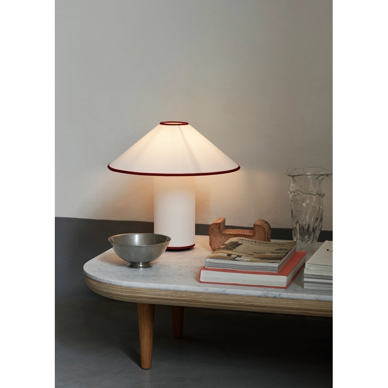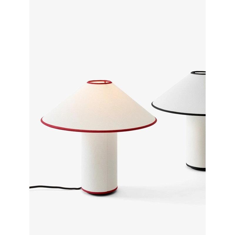 Available in two sophisticated colour combinations, the Colette lamp plays on emotions and nostalgia with its Art-Deco style. Named after the famous French author Colette, the And Tradition lamp boasts an avant-garde aesthetic. Featuring a diffuser and base entirely covered in a cotton and linen blend, this lamp is elegant, soft and playful. After extensive research, Colette was created by the And Tradition design team as a modern interpretation of the classic lamp. Original, Colette has a classic charm enhanced by the contrasting black or red trim that highlights the shade and base. A built-in dimmer lets you control the light intensity to suit the mood you want, whether in the living room or on the bedside table.