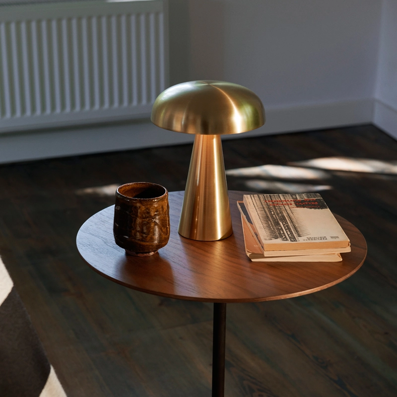 Match lighting to mood with Como SC53, a portable table lamp from /strong>Space Copenhagen for And Tradition. Made from anodised aluminium, the sturdy base of Como tapers to a slightly curved, mushroom-shaped shade. The light Como SC53 is battery powered can operate for eleven hours at the highest setting. The Lamp Como SC53 is equipped with a dimmer switch allowing three light levels to be set, to create the desired ambience. It recharges easily via a magnetic USB cable. For communal spaces, a trolley equipped with trays, which can charge several lamps at the same time, can be ordered on request.