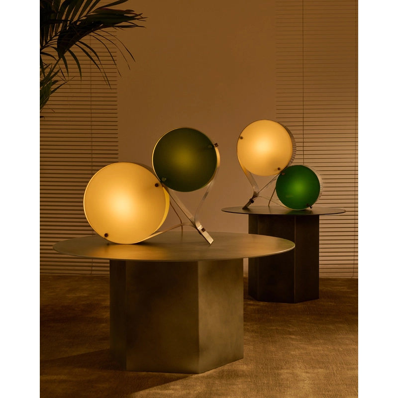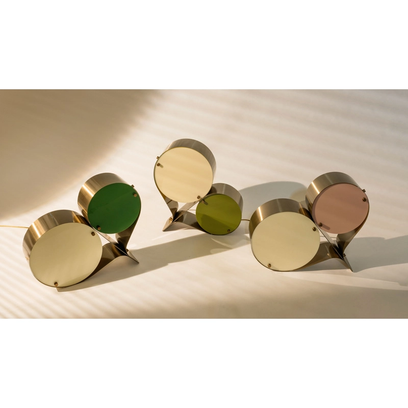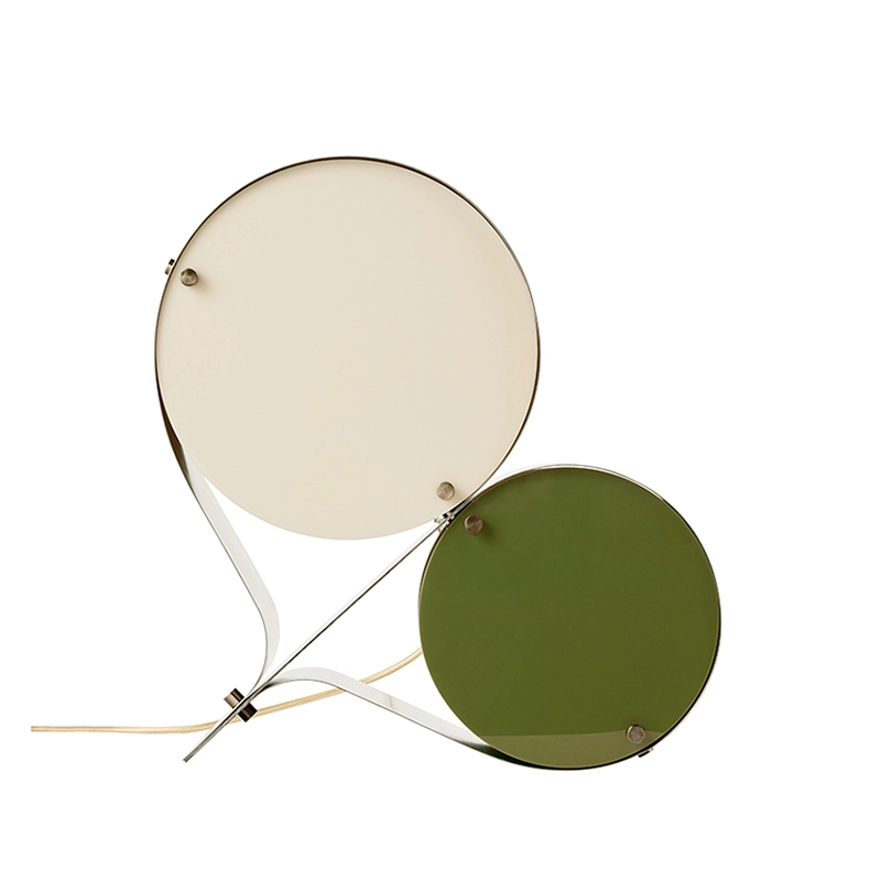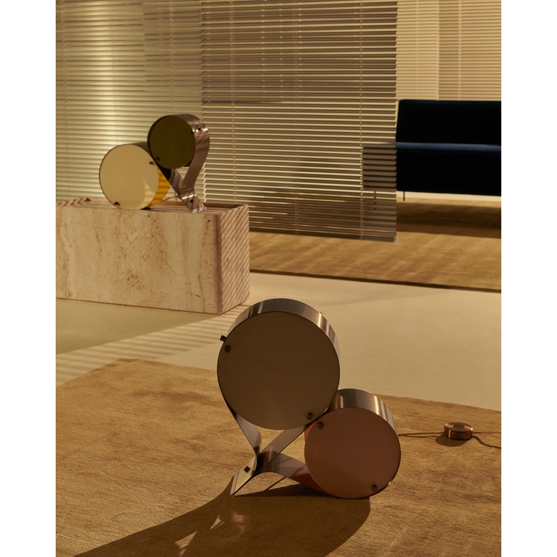 Coppia is a sculptural table lamp, designed by Vibeke Fonnesberg Schmidt for the Gubi brand. With two Plexiglas discs, the signature of Fonnesberg Schmidt, housed in a curved metal case, this lamp stands out for its design that is both industrial and elegant, fluid and geometric. The Coppia lamp is robust enough to be used as a table lamp or floor lamp, moving easily from desk to bedside, from shelf to windowsill, as required.