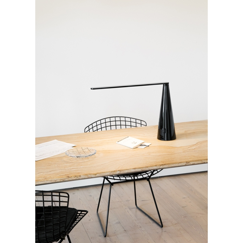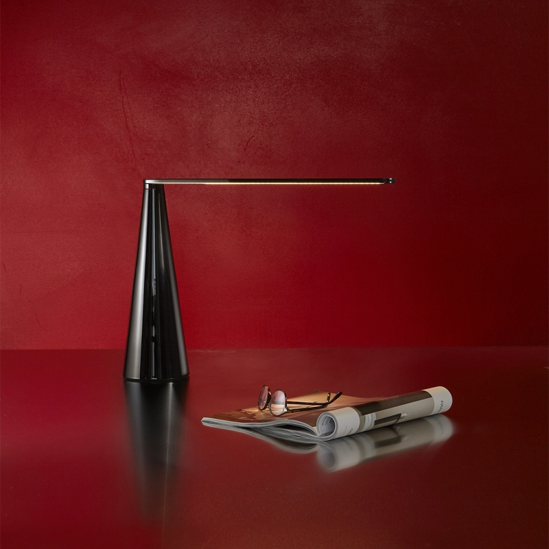 This swivel table lamp combines all the charm and mastery of Italian design in a painted aluminium structure with an integrated LED light source. To preserve the integrity of its conical silhouette, Elica has no switch: it's by turning its arm that you turn the lamp on or off.