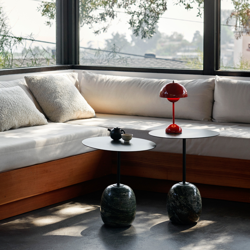 In 1968, the student riots in Paris, Rome and the United States overthrew the old, overly severe values and brought in the "Flower-Power" generation of peace, love and harmony. In the same year, Stanley Kubrick imagined the future, the year 2001, featuring in his film the Panton chair that had become a design classic and man was about to set foot on the moon. In the world of design, a colourful and fun pendant lamp was blooming in restaurants and exhibitions and was soon seen in homes, too. The FlowerPot lamp, with its two half spheres facing each other, features a timeless, high-quality design, edited by & Tradition. With a wide choice of colours, the FlowerPot VP9 table lamp is very practical thanks to its battery operation. With the cable removed, it can easily be moved around, finding the perfect spot in both homes and communal spaces.