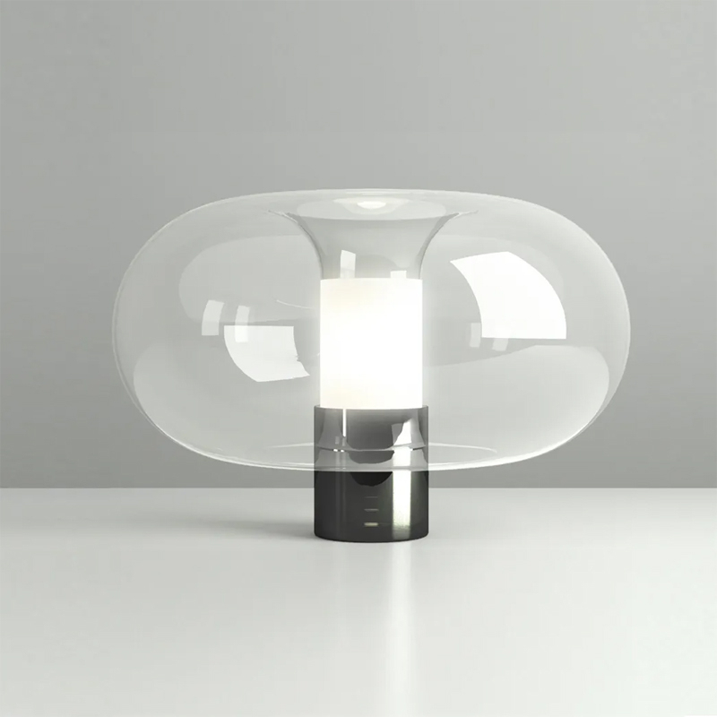 With Fontanella, Fontana Arte offers an elegant lamp that highlights two historic materials in the brand's tradition: metal and glass. The metal forms the base and contains the light source, while the glass, the real protagonist of the project, is skilfully worked by skilled craftsmen in a fusion process between a transparent glass section and a satin-finish section from which the light is diffused. The Fontanella lamp is distinguished by the union of two glasses: a sandblasted inner tube, connected to a bubble-shaped piece of blown glass. What makes the process particularly refined is the manual assembly of these two pieces, which requires the technique of a craftsman. For example, Fontanella is a soft, sculptural diffused light lamp that will fit in with any style of interior.