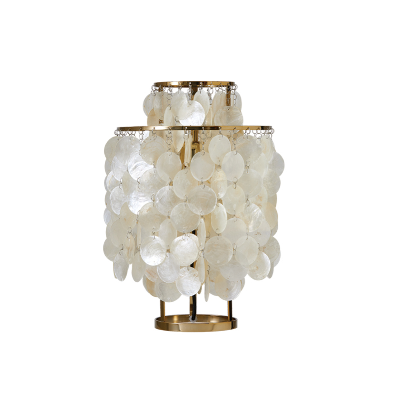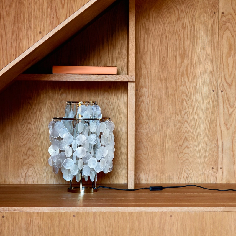Many consider the Fun collection to be one of Verner Panton's greatest masterpieces of lighting design. Since 1964, this table lamp has brought joy and a wealth of stories. With its multitude of pearly discs, the Fun 2TM Verpan lamp adds a touch of charm and soft lighting to the bedroom, living room or hallway.