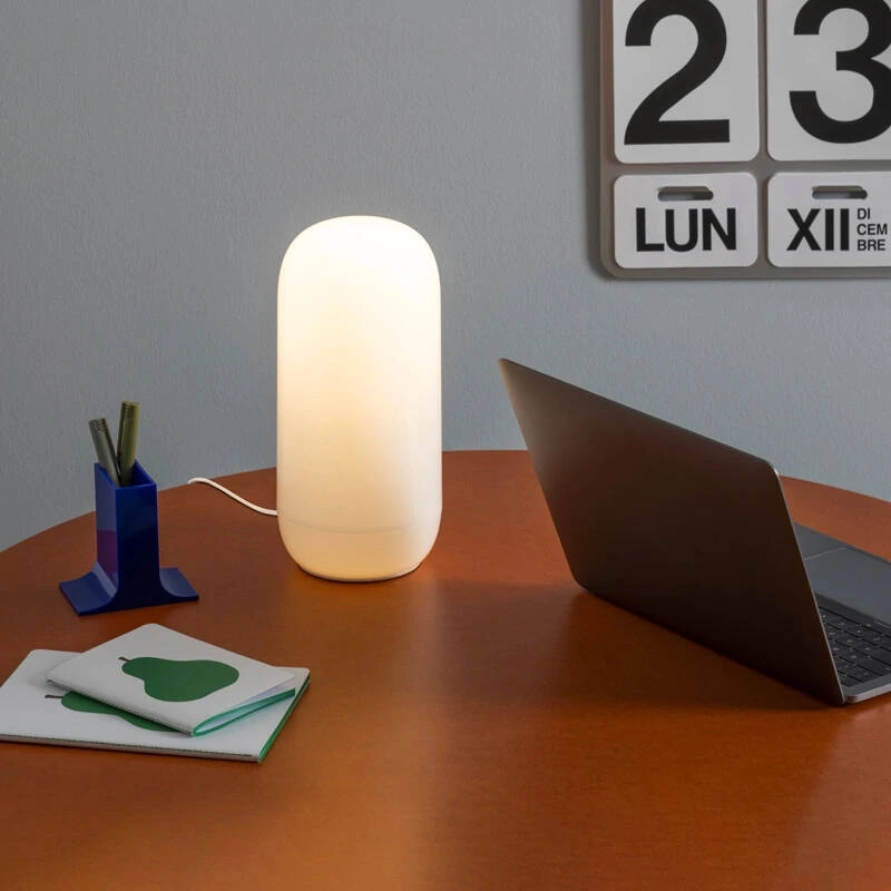 Gople plug is a small table lamp designed by BIG for the brand Artemide.  The Gople Plug lamp has the same formal features as the Gople Portable but with a traditional electrical connection. Each element of Gople plug is designed to guarantee excellent quality of light with high rendering and low energy consumption. Gople diffuses a soft light that adapts to any room in the house.