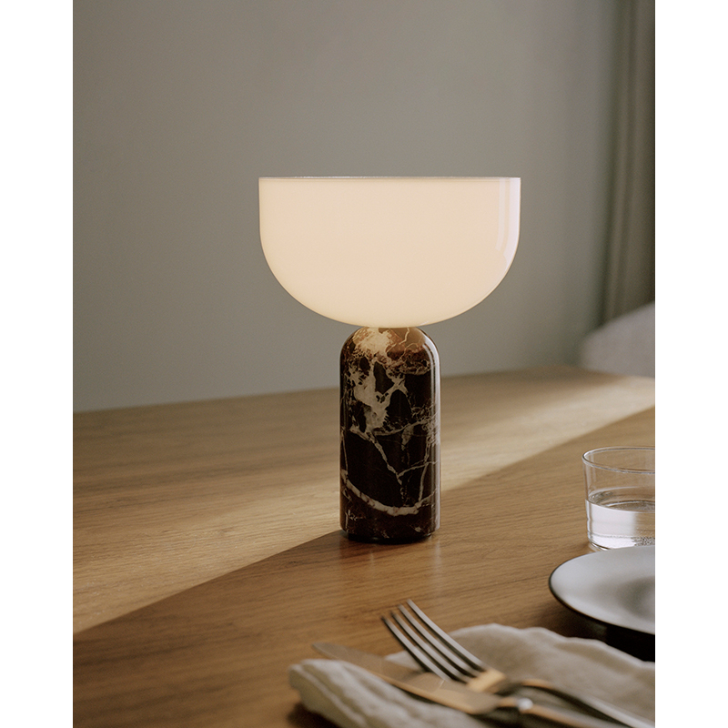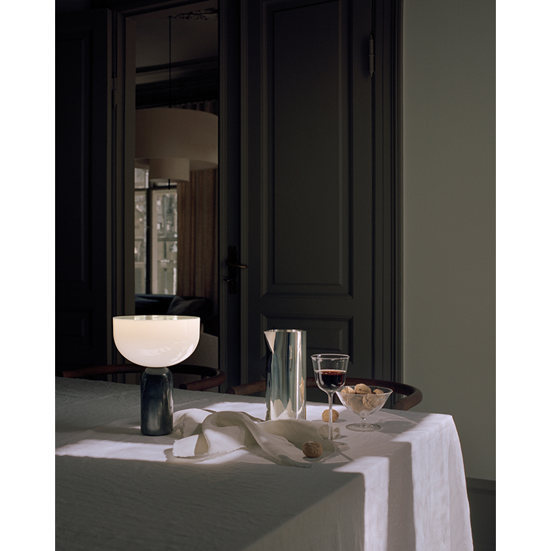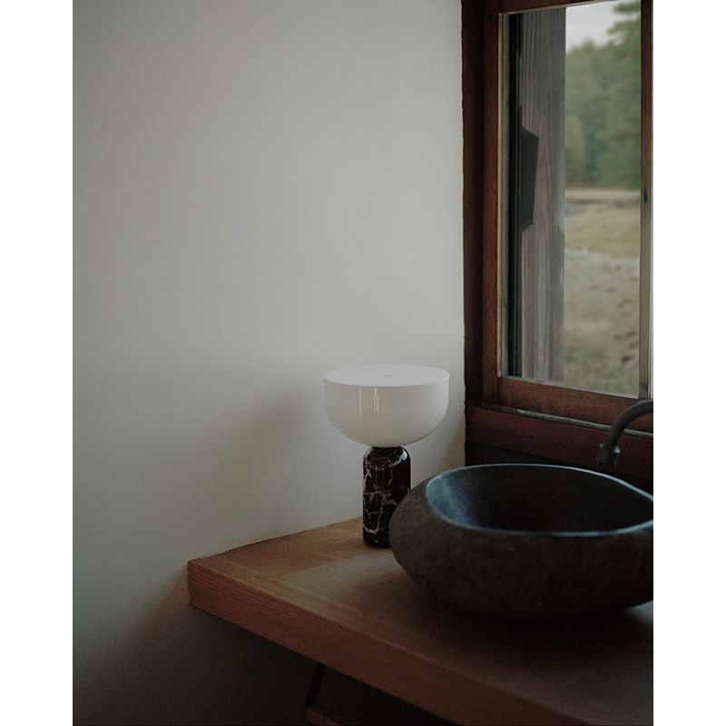 Comprising two bold sculptural shapes, the Kizu Portable table lamp, edited by New Works, offers a weightless play of balance. The illusion of gravity creates tension within the room, while its soothing curves add to its charm. This union of marble and function creates an object in perfect harmony, adding a soft, sculptural touch to your interior. Kizu Portable is easy to move where light is needed. It has a battery life of 10 hours at 100% light setting and recharges using a USB-C cable.