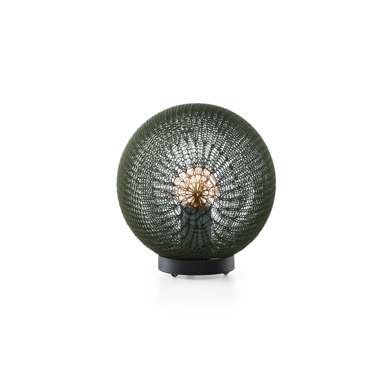 Madame Latoque is part of the Monsieur Tricot collection, a range of outdoor lighting published by Tribu, hand-knitted and crocheted to transform your terrace and garden into a magical place when night falls. The table lamps, designed by Belgian designer Ilia Eckardt, combine traditional techniques, high-performance materials and modern technology. Eckardt has developed its first knitted outdoor lighting collection, designed as a family. Meet the graceful suspension Madame Latoque available in three sizes. This spherical table lamp diffuses a warm subdued light and casts magnificent shadows, used separately or shimmering in a subtle combination of different sizes and weaves.