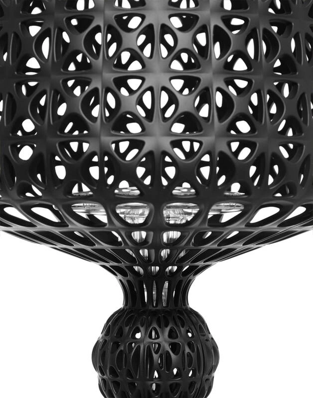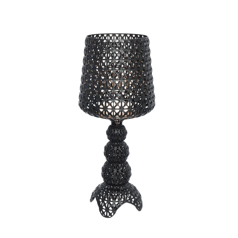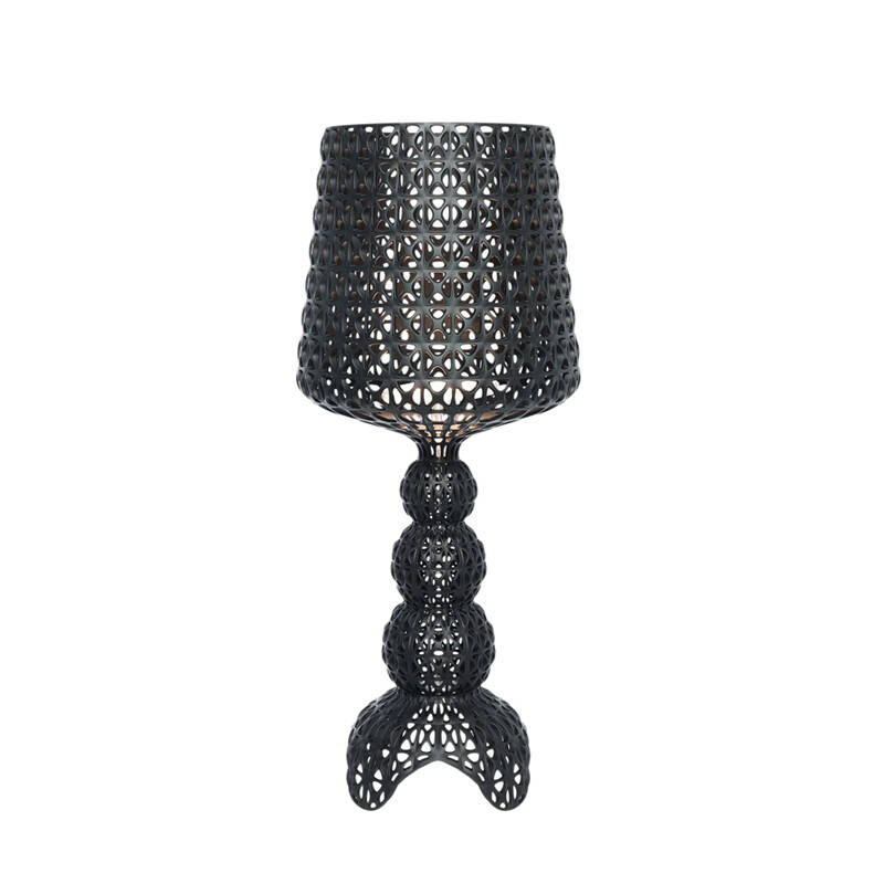 Mini Kabuki is a table lamp designed by designer Ferruccio Lavani for the Kartell brand. Mini Kabuki surprises with its neo-baroque lines and openwork surface, inspired by lace, which plays with the light. This distinctive screen structure was created by injecting transparent or solution-tinted thermoplastic technopolymer. A light sculpture full of character, the Mini Kabuki table lamp comes in a range of transparent (crystal, green and light blue) or opaque (black and white) colour finishes.