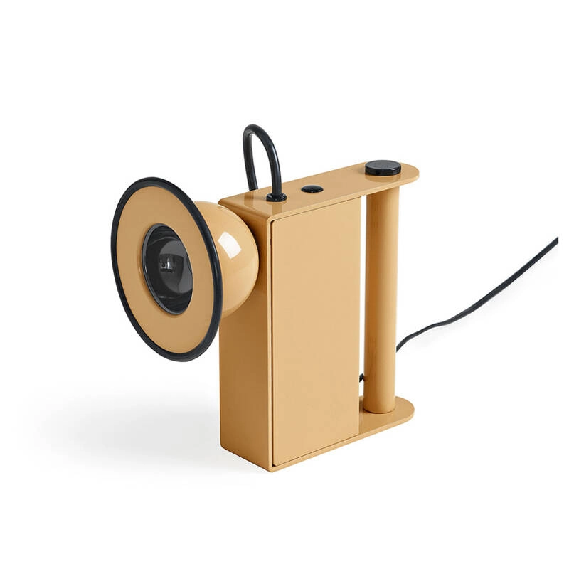 Designed by Gae Aulenti and PieroCastiglioni in 1981 for Stilnovo, the Minibox table lamp features a metal body, a comfortable handle and an irreverent luminous eye, reminiscent of the aesthetics of miners' lamps. The Minibox head's magnetic coupling lets you direct the light, making it suitable for any space, even the most unexpected.