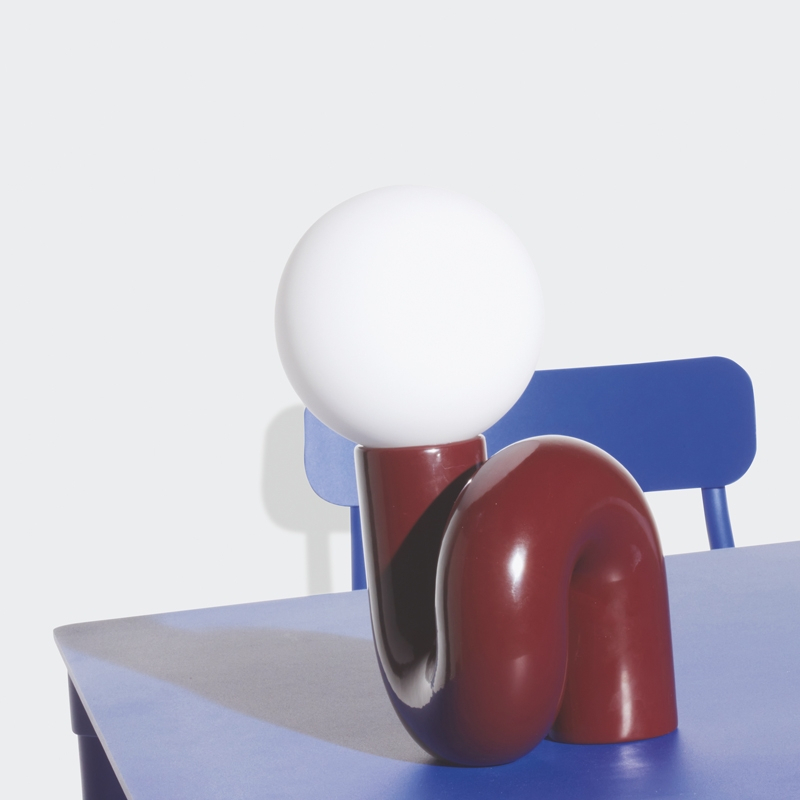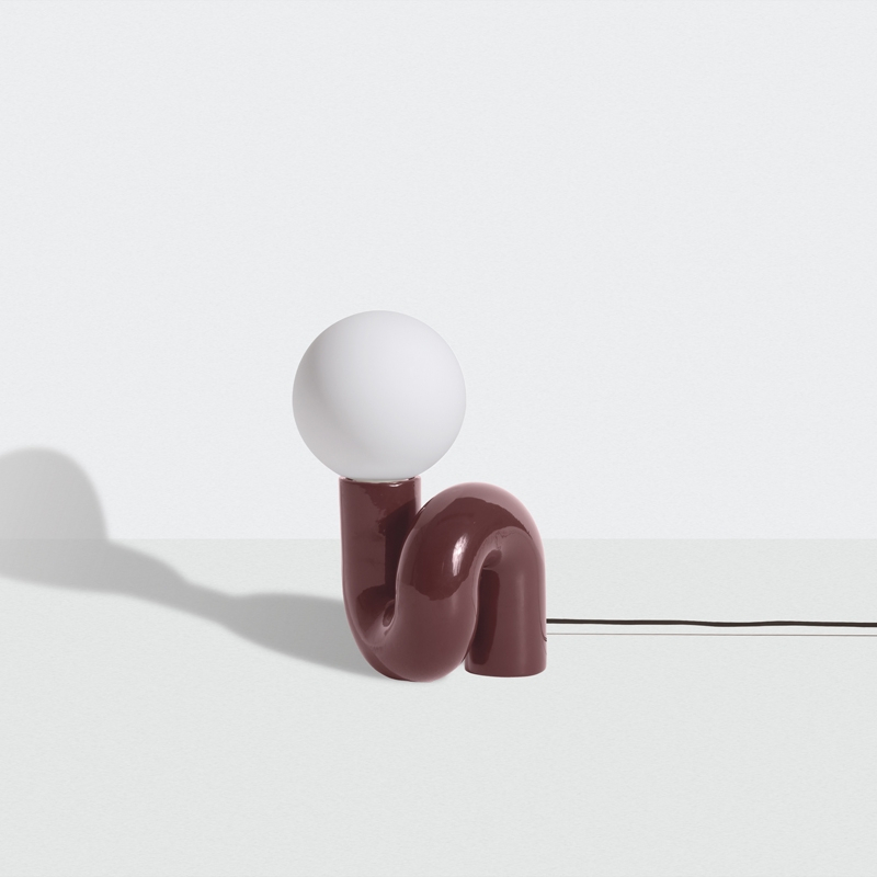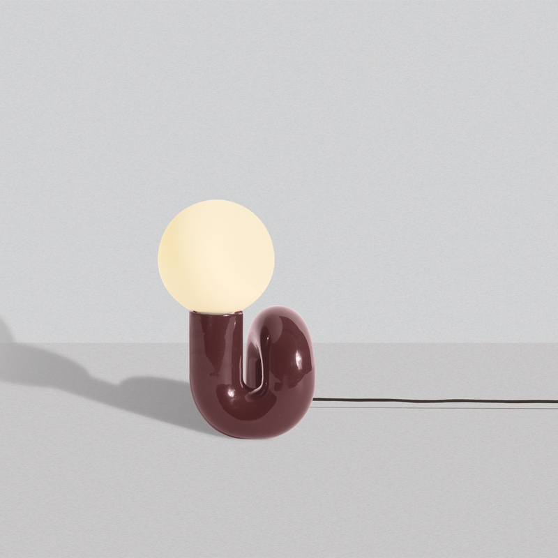 A pop and sculptural lamp, Néotenic is one born of the collaboration between Petite Friture and design studio Jumbo. Its round, generous shapes allude to the reassuring aesthetics of childhood. The designers' intention for the Néotenic lamp was to arouse emotion and create a carnal link between man and object. Morello cherry, vermilion and vanilla colours, a signature of the Petite Friture universe, suggest the regressive image of aubergine and tomato sauce.