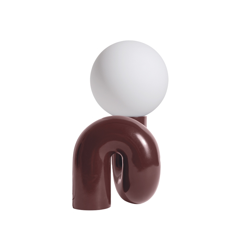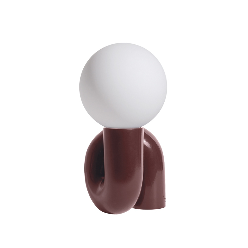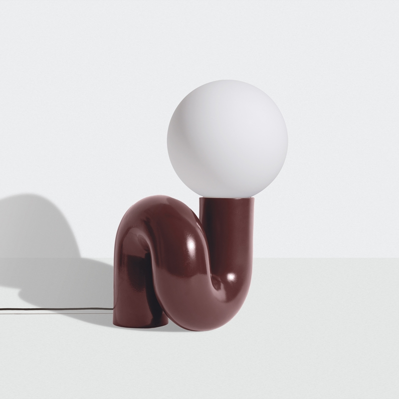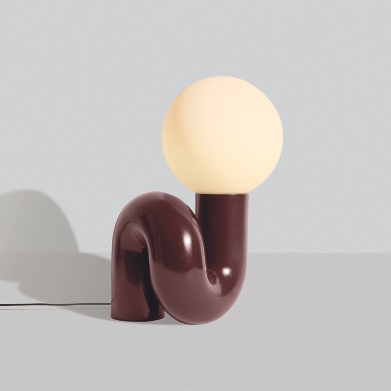 A pop and sculptural lamp, Néotenic is one born of the collaboration between Petite Friture and design studio Jumbo. Its round, generous shapes allude to the reassuring aesthetics of childhood. The designers' intention for the Neotenic lamp was to evoke emotion and create a carnal link between man and object. Morello cherry, vermilion and vanilla colours, a signature of the Petite Friture universe, suggest the regressive image of aubergine and tomato sauce.